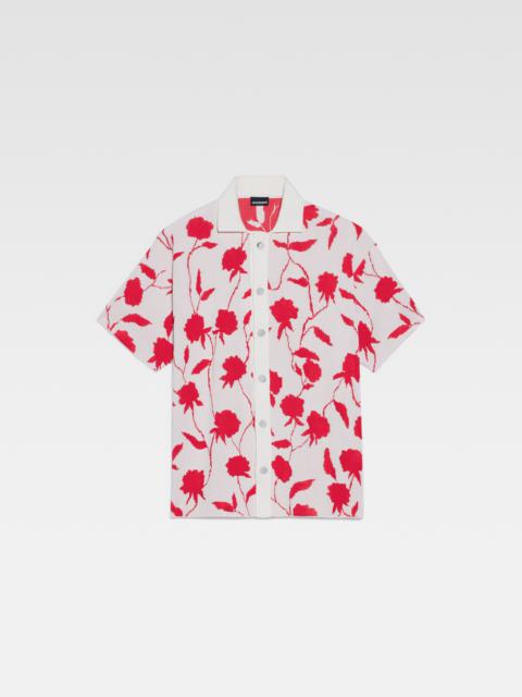 LE CHOUCHOU Rose stencil jacquard shirt - Straight fit with short-sleeves - Rose stencil jacquard - Pointed ribbed collar - Metal buttons The model is 189 cm and wears a size M. 78% Recycled polyester - 14% Polyester - 8% Polyamide Made in Italy Ref.236KN287-2327-045