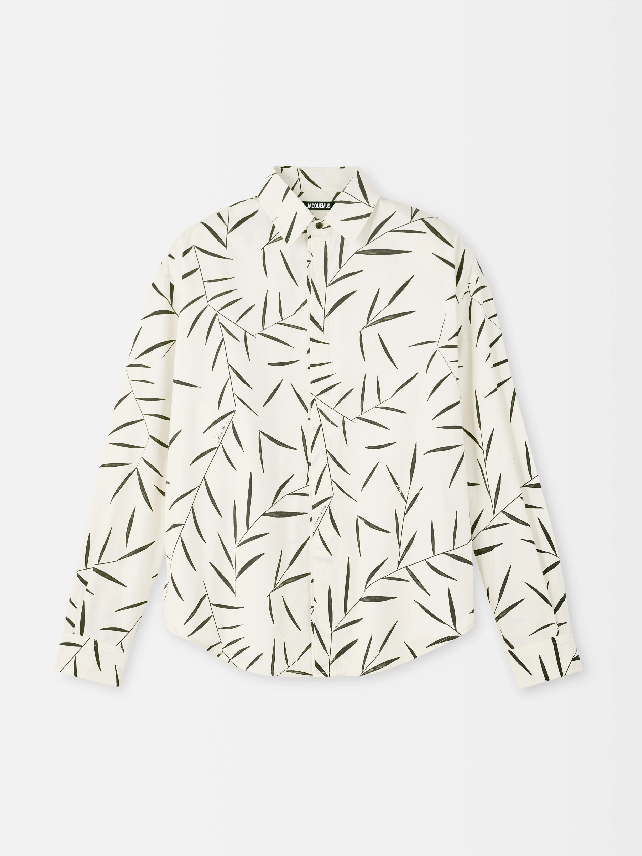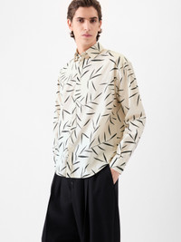 Foliage print shirt - Straight fit - Cotton poplin with Foliage print - Pointed collar - Hidden button placket - Square cuffs with hidden buttons - Back yoke - Rounded pleat in the back - "J" loop in the back - Mother-of-pearl buttons The model is 190cm and wears a size 48 100% Cotton Made in France Ref. SHM00541AW002081KL