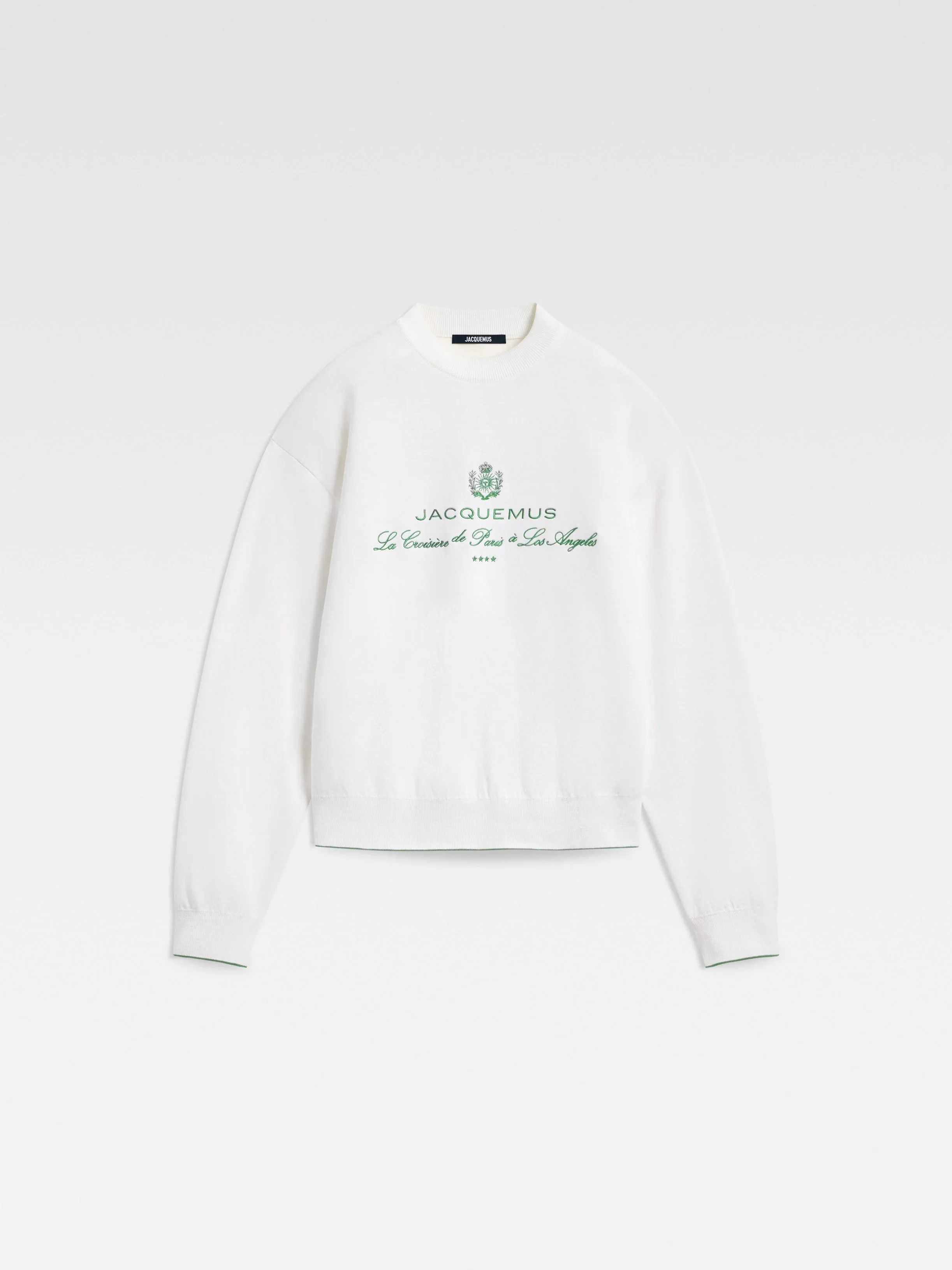 LA CROISIERE Jacquemus Cruise sweater - Relaxed fit - Double ribbed cotton viscose blend - Ribbed mock-neck - Jacquemus Cruise embroidery - Ribbed hem and cuffs with contrast stripe The model is 185cm and wears a size M 53% Cotton - 42% Viscose - 5% Polyamide Made in Italy Ref. 255KN544-2427-1IN
