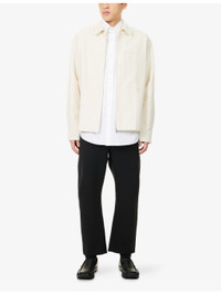 PRODUCT DETAILS - Jacquemus cotton-blend shirt - 93% cotton, 7% polyamide - Concealed zip fastening at front - Regular fit, pointed collar, rounded shoulders, long sleeves, buttoned cuffs, metal logo-engraved zipper, one piped chest pocket, stitched initial at front, ""The Duck Pond"" graphic embroidery at back, horn buttons - Hand wash - Made in Portugal - Size UK 40: length 30in / 76cm, chest 42in / 107cm - Model is 6ft 2in/1.88m and wears a size UK 40 - Midweight, non-stretch Ref: R04568166