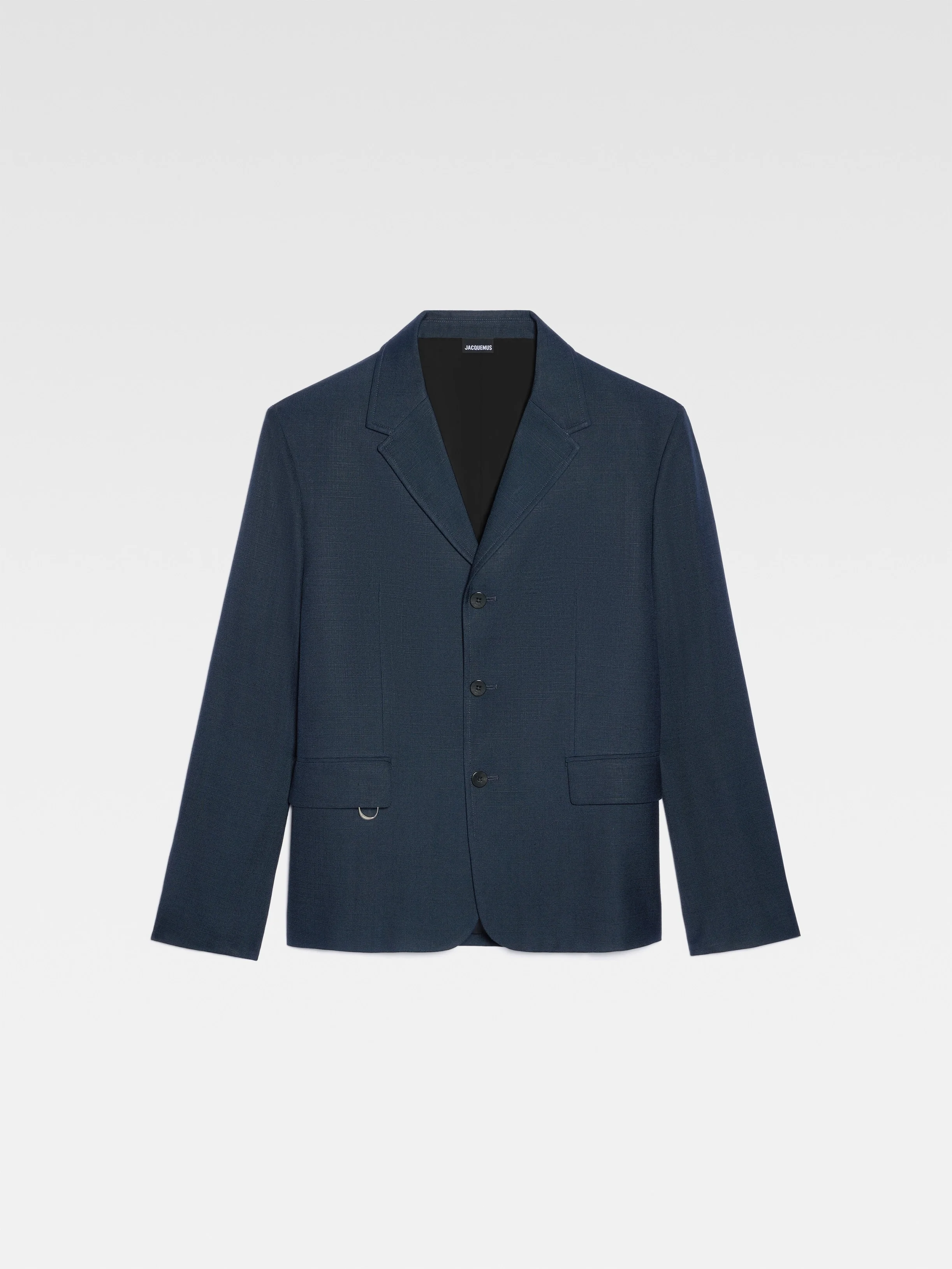 Les Classiques Square suit jacket - Straight fit with structured shoulders - Notched lapel - Engraved three-button closure - Flap welt pockets - Buttoned cuffs - D-ring on the right pocket The model is 183 cm and wears a size 48 100% Viscose - 65% Polyester - 35% Cotton / Lining: 48% Acetate - 46% Cotton - 6% Elastane Made in Romania Ref. 245JA037-1359-390