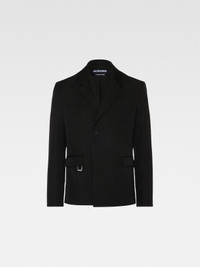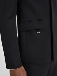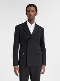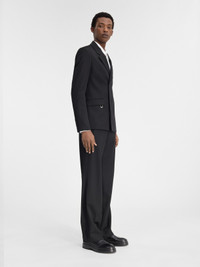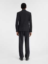 LA CASA Double-breasted blazer - Straight fit with structured shoulders - Notched lapel - Double-breasted with single visible button - Buttoned cuffs - Flap welt pockets - D-ring on the right pocket The model is 188 cm and wears a size 48 100% Virgin wool - 65% Polyester - 35% Cotton / Lining: 48% Acetate - 46% Cotton - 6% Elastane Made in Romania Ref. 246JA039-1333-990