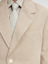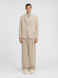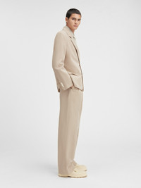 LES SCULPTURES Soft blazer - Slightly oversized straight fit - Rounded shoulders - Notched lapel - Two-button closure - Chest welt pocket - Seamless flap pockets - Buttoned cuffs - Back slit The model is 191 cm and wears a size 48 43% Virgin wool - 57% Linen / Lining: 100% Viscose Made in Portugal Ref.245JA045-1546-150