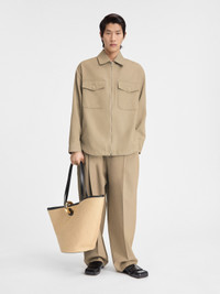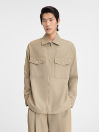 LA CASA Zipped workwear shirt - Oversized, straight fit - Twill fabric - Pointed collar - Metal zip - Two buttoned flap pockets on the chest - Square buttoned cuffs - Back yoke with box pleat - Rounded split hem - Fully lined - Contrast stitching - Corozo buttons The model is 185cm and wears a size 48 63% Polyester - 37% Virgin wool Made in Bulgaria Ref. 236BL102-1629-150
