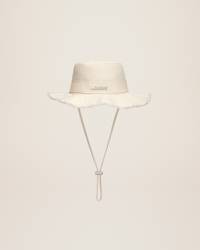 LE PAPIER Frayed expedition hat - Cotton bucket hat - Long adjustable strap - Silver metal logo - Topstitched brim 100% Cotton Made in Bulgaria Ref.213AC002-5001-110