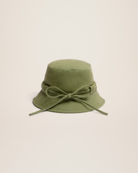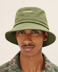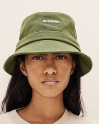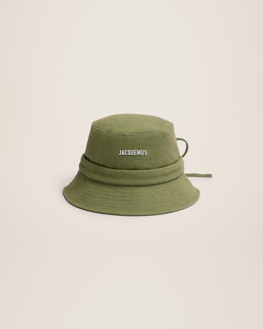 Le Raphia Knotted bucket hat - Cotton bucket hat - Silver metal logo - Visible topstitched drawcord in the back that can be tied in a bow - Topstitched brim 100% Cotton/Lining - 100% Cotton Made in China Ref.223AC001-5012-560