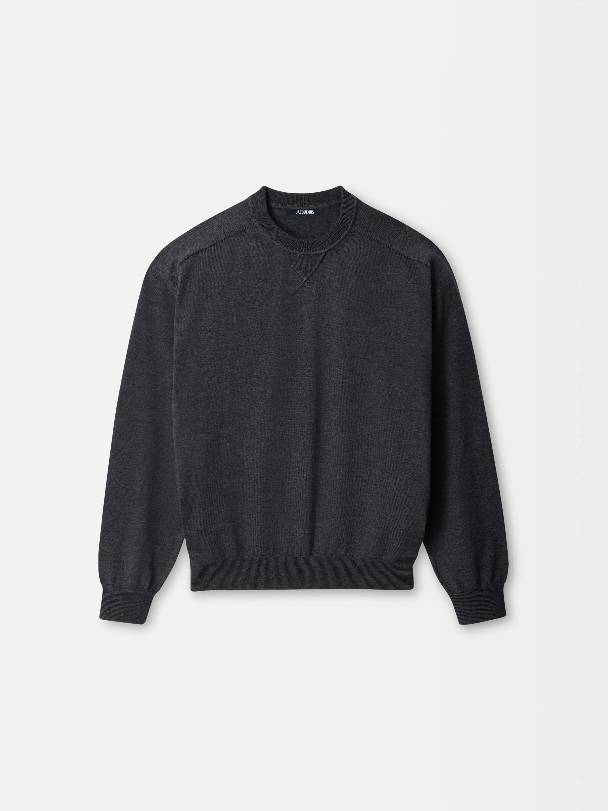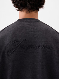 Embroidered knit sweater - Relaxed fit - Merino wool knit - Ribbed crewneck, cuffs and hem - Overlock stitching below the collar - Long loose sleeves - Embroidered logo on the back The model is 188cm and wears a size M 96% Merino Wool - 4% Polyamide Made in France Ref. SWM00614AK00299970