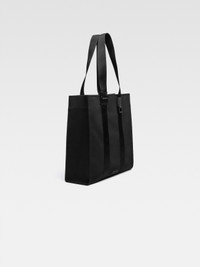 Les Classiques Nylon messenger tote. - Nylon bag - Structured shape - Snap closure - Top handles - Engraved square carabiner - Patch pocket on the back - Interior double zipped leather pocket - Fully lined in cotton - Height 40 cm - Length 37.5 cm - Width 14 cm - Handle width: 4 cm 100% Nylon / Lining: 100% Cotton Made in Turkey Ref. 236BA305-3174-990