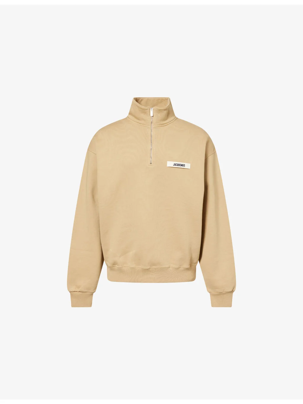 PRODUCT DETAILS - Jacquemus cotton sweatshirt - 100% cotton - Zip fastening at front - Relaxed fit, funnel neck, long sleeves, logo tab at chest - Machine wash at 30°C - Made in Portugal - Model is 6ft 2in/1.88m and wears a size medium - Midweight, slight stretch Ref: R04568194