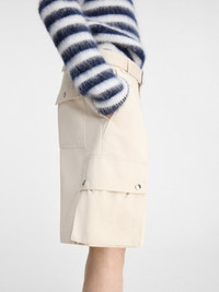 LA CASA Belted cargo shorts - Relaxed, mid-rise bermuda cut - Water-repellent textured cotton-linen - Removable belt with metal buckle - Belt loops with "J" loop - Slant pockets - Zipped fly - Gusseted flap pockets with snap buttons - Flap pocket with a snap button on the back The model is 185cm and wears a size 48 82% Cotton - 18% Linen Made in Bulgaria Ref. 246PA096-1534-150