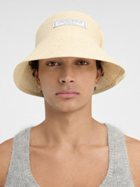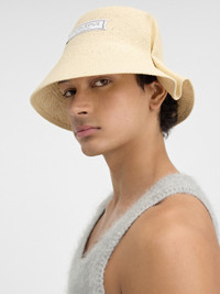 LA CASA Folded raffia bucket hat - Woven raffia hat - Folded on one side - Extended brim - Capri logo patch 100% Paper raffia Made in Italy Ref. 246AC677-5212-142