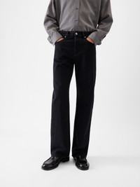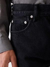 Straight-leg jeans - Mid-high rise - Washed black denim - “J" belt loop - Engraved metal button fly - Metal rivets - Five pockets including ticket pocket - Long straight leg - Embroidered patch on the back - Back yoke - Back patch pockets with laser-printed logo - Contrast topstitching 100% Cotton / Lining: 65% Polyester - 35% Cotton Made in Portugal Ref. PAM00028AD00039990