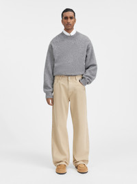 Les Classiques Baggy jeans - Mid rise - Raw denim - Straight wide leg - Five pockets with metal studs and rivets - “J” belt loop - Button fly - Silver metal hardware - Large denim patch above back pocket - Contrast stitching The model is 171 cm and wears a size 30 100% Cotton Made in Italy Ref. 245DE038-1514-150