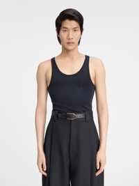 LA CASA Fitted tank top - Fitted shape - Fine-rib jersey - Ribbed neckline and armholes - "J" Fisherman logo embroidered on chest - Fisherman logo tag on the back The model is 185cm and wears a size M 100% Cotton Made in Portugal Ref. 246JS267-2454-390