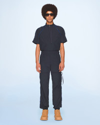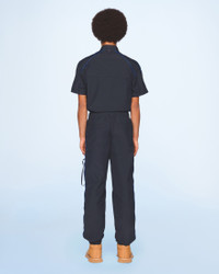 LE SPLASH Technical track-pants - Straight cut - Mid-rise - Elasticated waistband and hem - Interior drawstring - Side pockets - Horizontal seams with hidden zipped pockets - Contrast silicone piping This item is manufactured according to the Global Recycled Standard (GRS® ). These standards ensure the traceability of recycled products throughout the production process as well as the respect of environmental and social criteria. The model is 185 cm and wears a size 48 74% Polyamide/Nylon - 26% Cotton Made in Romania Ref.225PA015-1014-380
