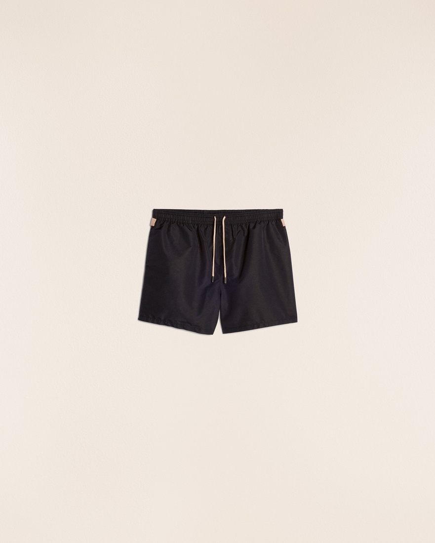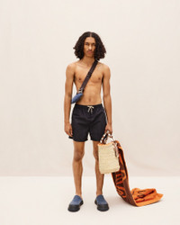 Le Raphia Grosgrain logo swimsuit - Classic boxer fit - Plain polyamide - Elasticated waistband with drawstring - Side seam pockets - Embroidered signature logo grosgrain detail - Interior mesh 100% Polyamide/Lining - 100% Polyester Made in Portugal Ref.235SW009-1423-990