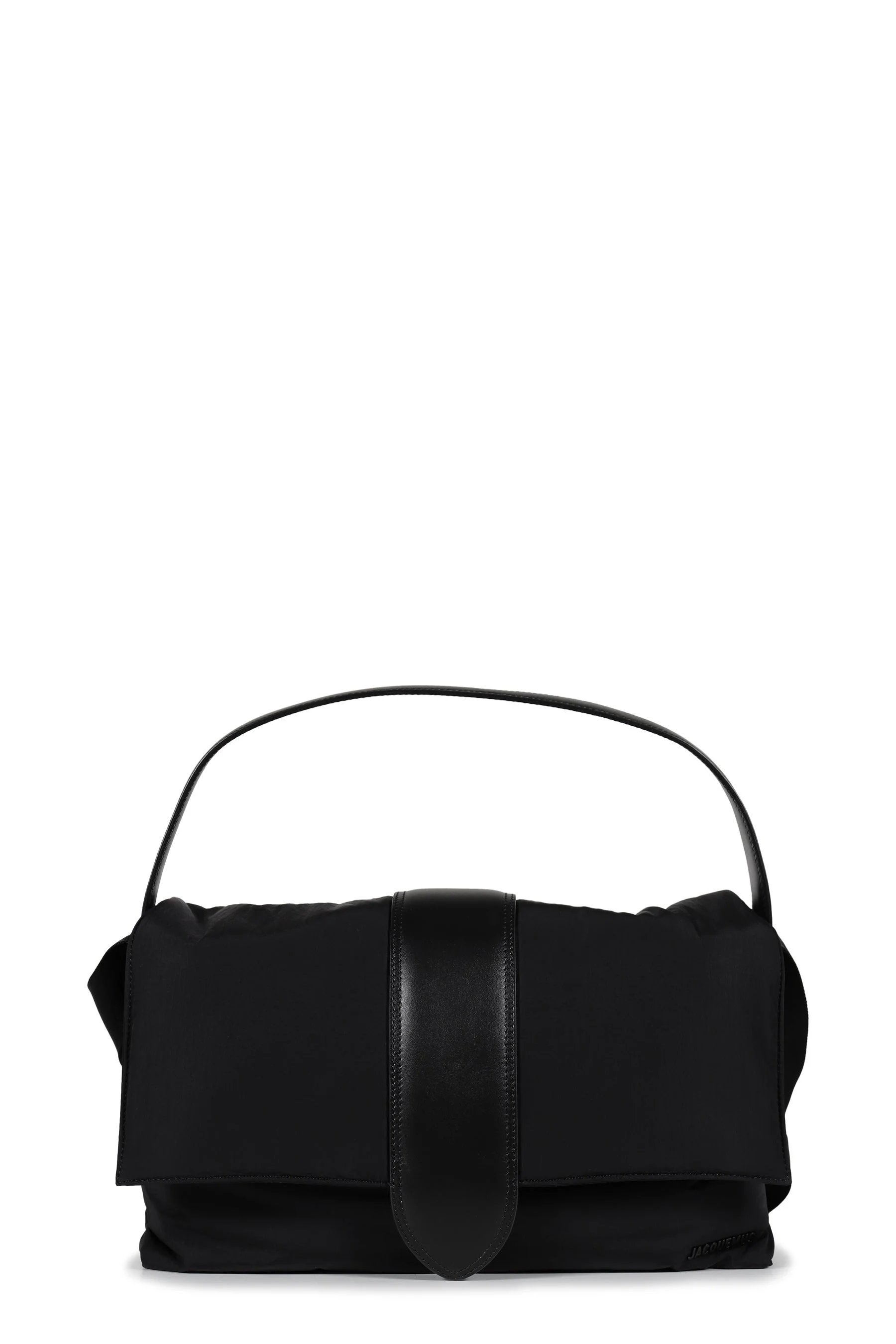 Sizing Size Height Width Depth OS 22cm 39cm 15cm Product Detail - Gender: UNISEX - Designer: JACQUEMUS - Categories: ALL SHOULDER BAGS JACQUEMUS x Bag - Material: POLYAMIDE 100%, COW LEATHER 100% - Model Number: 25ebam00372bw00424-blk