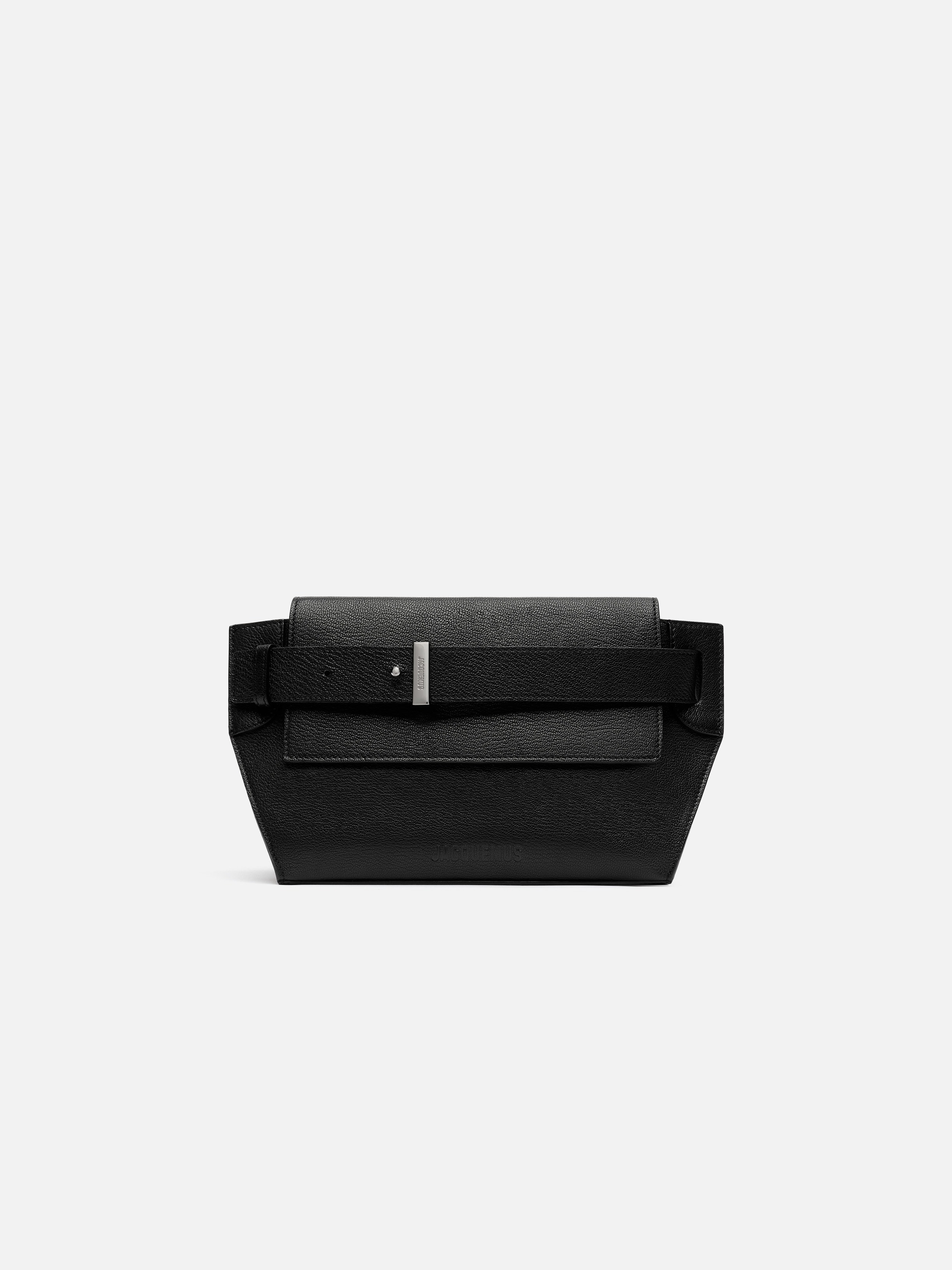 LA CASA Folded messenger bag - Grained leather messenger - Topstitched details - Removable, adjustable shoulder strap - Magnetic flap - Adjustable front strap with engraved buckle - Embossed logo - Zipped back pocket - Interior patch pocket - Silver metal hardware - Can be worn in-hand or as a cross-body bag - Height: 15cm - Length: 29cm - Width: 9cm 100% Goat leather Made in Italy Ref.246BA378-3206-990