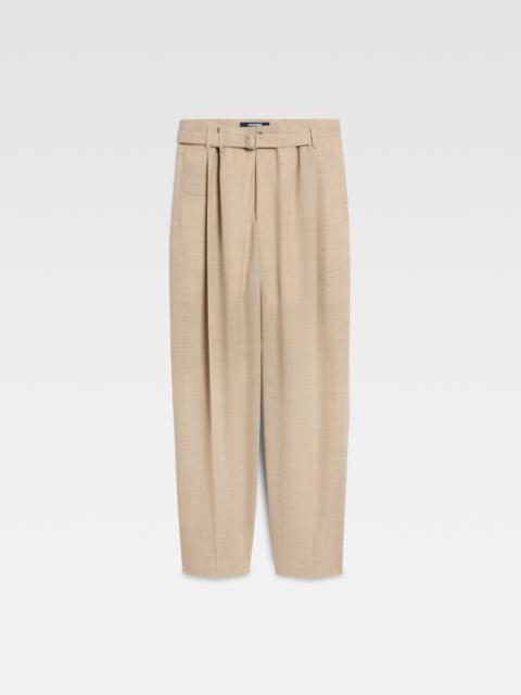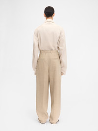 LA CROISIERE Pleated belted pants - Medium-high rise - Wool suiting fabric - Wide pleated leg - Matching integrated belt with metal buckle - Zip closure with hook and button - Side-seam pockets - Belt loops including “J” loop - Back welt pockets - Silver metal hardware The model is 190cm and wears a size 48 100% Wool / Lining: 55% Cotton - 45% Polyester Made in Romania Ref. 255PA132-1720-150