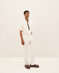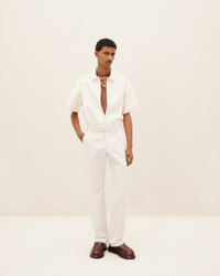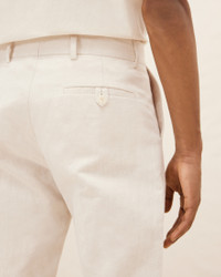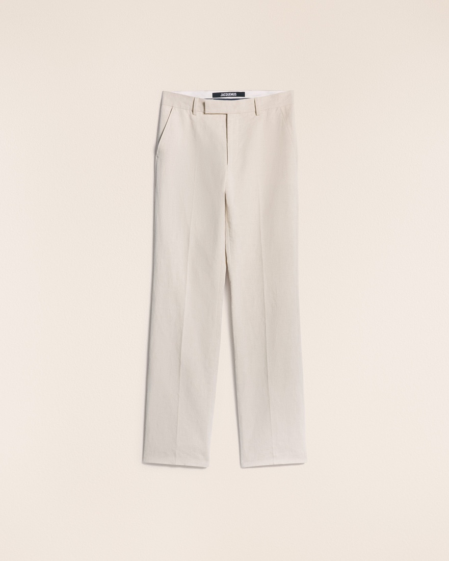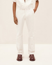 Le Raphia Pressed-pleat pants - Straight fit - Mid-rise - Linen fabric - Hidden zip closure with hook and button - Belt loops - Side pockets - Back welt pocket with corozo button 57% Cotton - 43% Linen Made in Portugal Ref.235PA039-1321-130