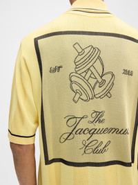 LA CROISIERE Jacquard polo shirt - Loose fit - Jacquard knit - Matt and shiny vertical stripes - Boxy elbow-length sleeves - Ribbed collar, cuffs and hem - Circle and square argyle jacquard detail - Contrast "20" embroidery on chest - Jacquard Jacquemus Club logo label on the back The model is 190cm and wears a size M 91% Viscose - 8% Polyamide - 1% Elastane Made in Romania Ref. 255KN542-2432-210