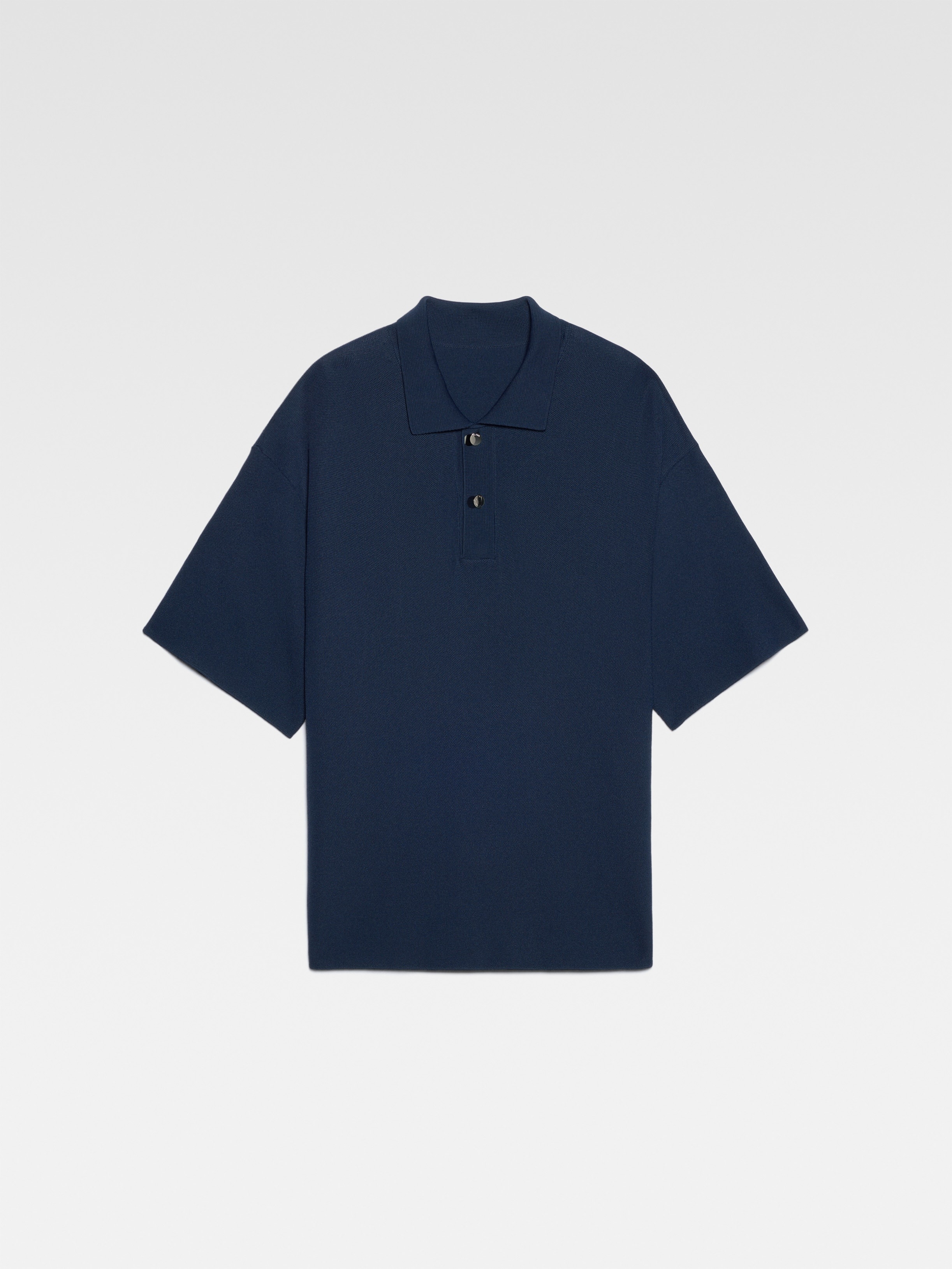 Les Classiques Knit polo - Loose fit - Piqué cotton - Boxy elbow-length sleeves - Polo collar - Silver metal buttons with engraved logo - Knit logo on back The model is 187 cm and wears a size M 65% Viscose - 35% Polyamide Made in Portugal Ref.245KN296-2379-390