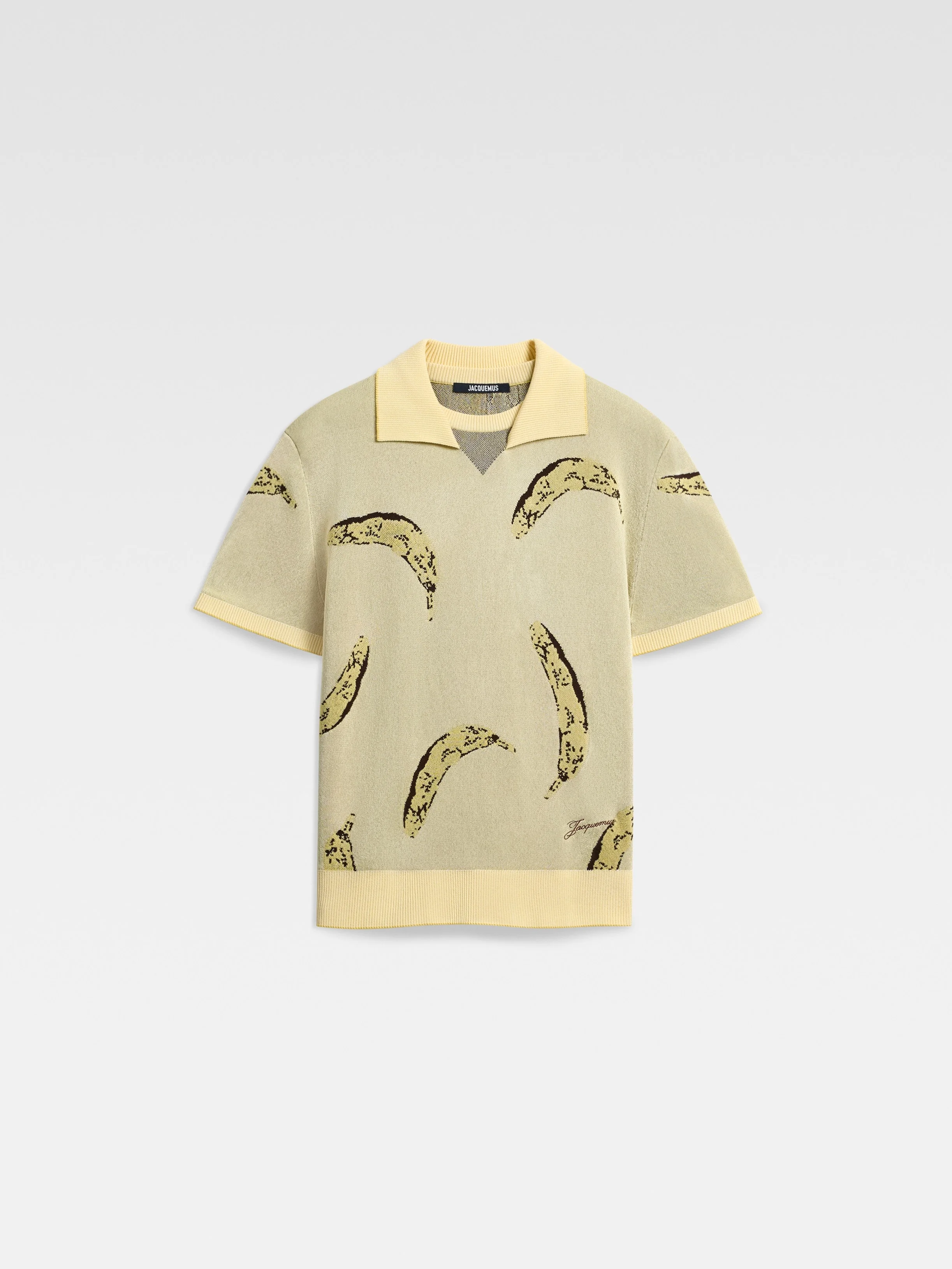 LA CROISIERE Banana polo - Fitted shape - Banana jacquard stretch knit - Buttonless polo collar - Double crew and polo collar - Ribbed collar, cuffs and hem The model is 185cm and wears a size M 91% Viscose - 6% Polyester - 3% Elastane Made in Bulgaria Ref. 255KN529-2025-2BU