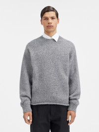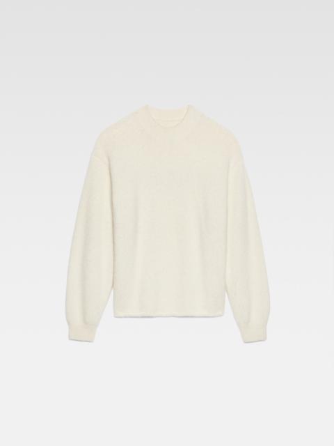 Les Classiques Logo sweater - Relaxed fit with long sleeves - Brushed alpaca knit - Rounded shoulders - Crew neck - Ribbed collar, cuffs and hem - Contrast jacquard logo on back The model is 188 cm and wears a size M 68% Alpaca wool - 22% Polyamide - 10% Merino wool Made in Bulgaria Ref. 245KN295-2329-950