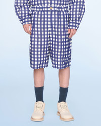 LE SPLASH Pleated shorts - Relaxed fit with sewn pleats - Elasticated mid-rise waist - Picnic check print - Belt loops - Hidden zip closure with engraved button - Side pockets - Mismatched back pockets - Back patch pocket with long fastening strap The model is 185 cm and wears a size 48 100% Viscose Made in Portugal Ref.225PA009-1005-3AP
