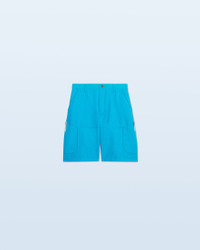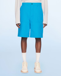 LE SPLASH Workwear bermuda shorts - Casual Bermuda shorts - Low-waist - Belt loops - Hidden zip closure with engraved button - Side pockets - Horizontal sewn panels - Cargo pockets with engraved buttons - Back welt pockets The model is 188 cm and wears a size 48 100% Cotton Made in Bulgaria Ref.225PA010-1047-330