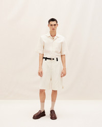 Été Buckled shorts - Oversized cut - Mid-rise - Cotton wool blend - Hidden zip closure with concealed clip - Visible drawstring at waist - Belt loops - Side pockets - Back patch pocket The model is 185 cm and wears a size 48 53% Viscose - 45% Virgin wool - 2% Elastane Made in Bulgaria Ref.235PA032-1030-150