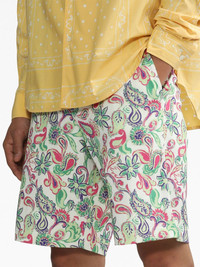Le short Pingo paisley-print shorts Jacquemus' paisley print from the Le Raphia collection embraces the line's rustic spirit with its hand-drawn effect. It covers these cotton shorts, paired with repeating logo lettering. Highlights - White/multicolour - Cotton - Paisley print - Front button and zip fastening - Rear elasticated waistband - Straight hem Imported Composition Cotton 100% SIZE & FIT FittingInformation Designed for a straight-leg fit, offering an unrestricted and comfortable fit over the leg The partially elasticated waistband offers increased movement and comfort at the waist Made from a midweight non-stretch fabric, this piece offers minimal elasticity when worn This piece fits true to size – take your usual size Washing instructions Read Manufacturer Guidelines