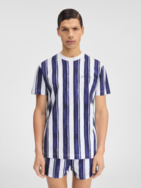 T-shirt with contrasting stripes - Relaxed fit - Short sleeves - Ribbed crew neck - Contrast paint stripes The model is 188 cm and wears a size M 100% Cotton Made in Portugal Ref. 246JS259-2102-3EG