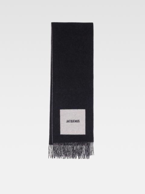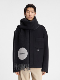 LA CASA Jacquard logo scarf - Long wool scarf - Solid colour wool - Contrast jacquard circle and square - Width: 35cm - Length: 180cm - 12cm fringe on each end 100% Virgin wool Made in Italy Ref.246AC687-5202-090