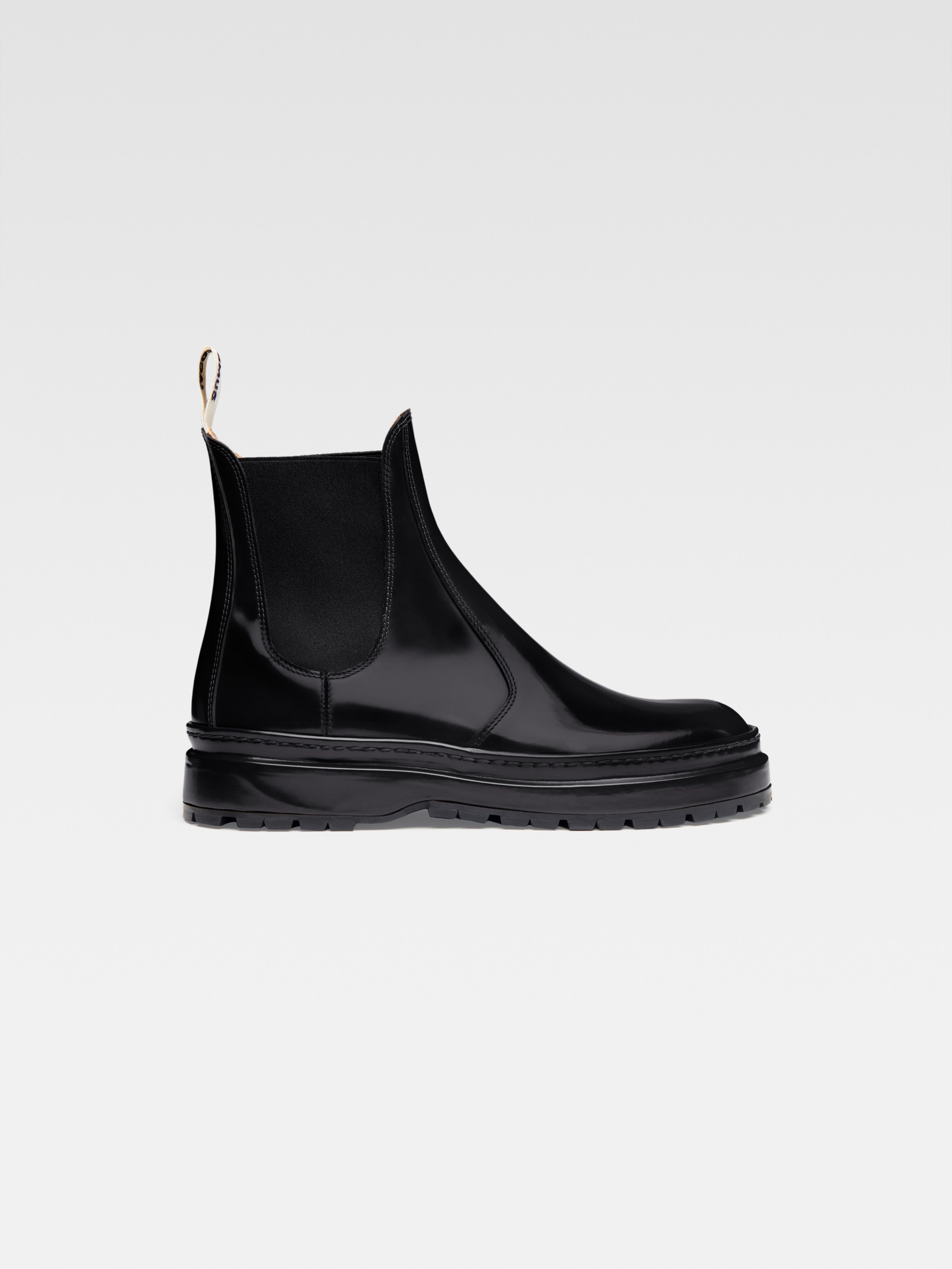 Le Chouchou Chelsea leather boots - Patent leather boots - Elasticated sides for added comfort - Platform - Round toe - Top-stitched seams - Embroidered grosgrain pull-tab logo ribbon front and back - Embossed and lightly notched soles 100% Cow leather Made in Italy Ref.236FO019-4015-990