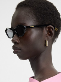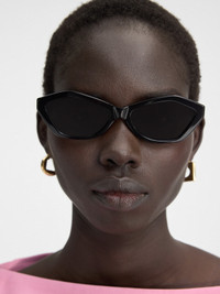 LA CASA Diamond sunglasses - Acetate sunglasses - Angled opaque frame inspired by the Bambino - Tinted lenses - UV 400 protection - Stainless steel circle and square tips - Gold-plated logo on the arm 100% Acetate Made in Japan Ref.246AC692-5040-990