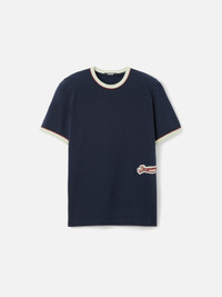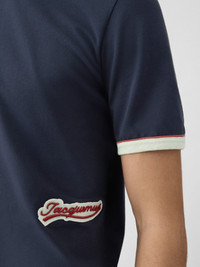 Short-sleeved t-shirt with embroidered patch - Slim fit - Short sleeves with contrasting ribbed trim - Crew neck with contrasting ribbed trim - Embroidered logo patch on the left side 100% Cotton Made in Portugal Ref. TSM00561AJ001703GH