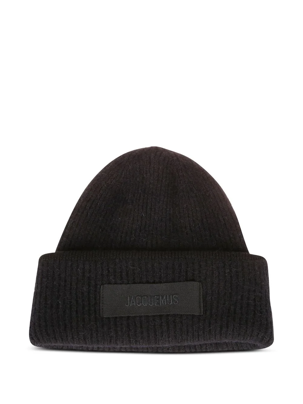 logo-patch beanie Highlights - Black - Ribbed knit - Logo patch - Turn-up brim Made in Italy Composition Alpaca 49%, Polyamide 30%, Wool 21%