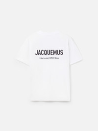 Short-sleeved t-shirt with logo and address - sold exclusively online and in our Ibiza pop-up store - Classic cut - Ribbed crew neck - JACQUEMUS logo printed on chest - Pop-up store address embroidered on back Men : The model is 1m89 and wears a size M Women : The model is 1m77 and wears a size S 100% Cotton Made in Portugal Ref. TSU00158AJ002261LA