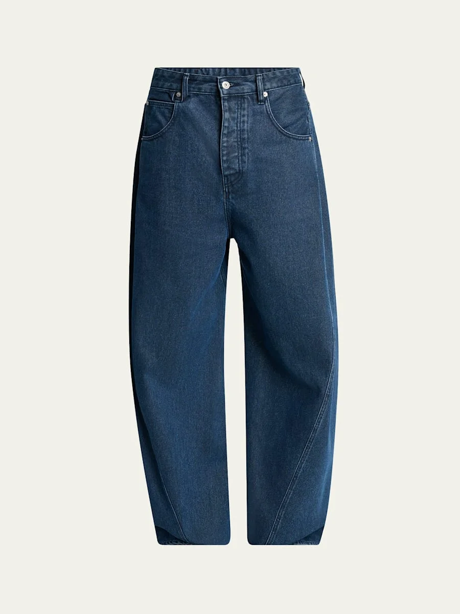 Jacquemus pants defined by a curved silhouette Regular rise Fivepocket style Logo signature on the back Relaxed fit through wide, curved legs Button zipfly; belt loops Cotton Made in Bulgaria