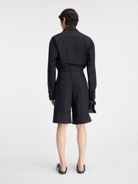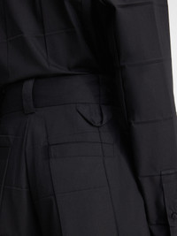 LA CASA Panelled bermuda shorts - Wide, mid-rise bermuda cut - Cotton canvas and technical polyester - Square panel construction - Wide belt loops with "J" loop on the back - Pressed pleats - Hidden zip closure with hook and button - Slant pockets - Back welt pockets The model is 185cm and wears a size 48 65% Polyester - 35% Cotton / Lining: 97% Cotton - 3% Elastane Made in Portugal Ref.246PA123-1671-990