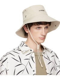 Linen- and cotton-blend denim bucket hat. · Logo hardware at face · Mismatched eyelets at sides · Cinch strap at back · Press-stud fastening at brim · Cord-lock chin strap · Cotton poplin lining · Logo-engraved silver-tone hardware Part of the La Croisiere collection. Supplier color: Off-white Body: 55% linen, 45% cotton. Lining: 100% cotton. Made in Bulgaria 252553M140010