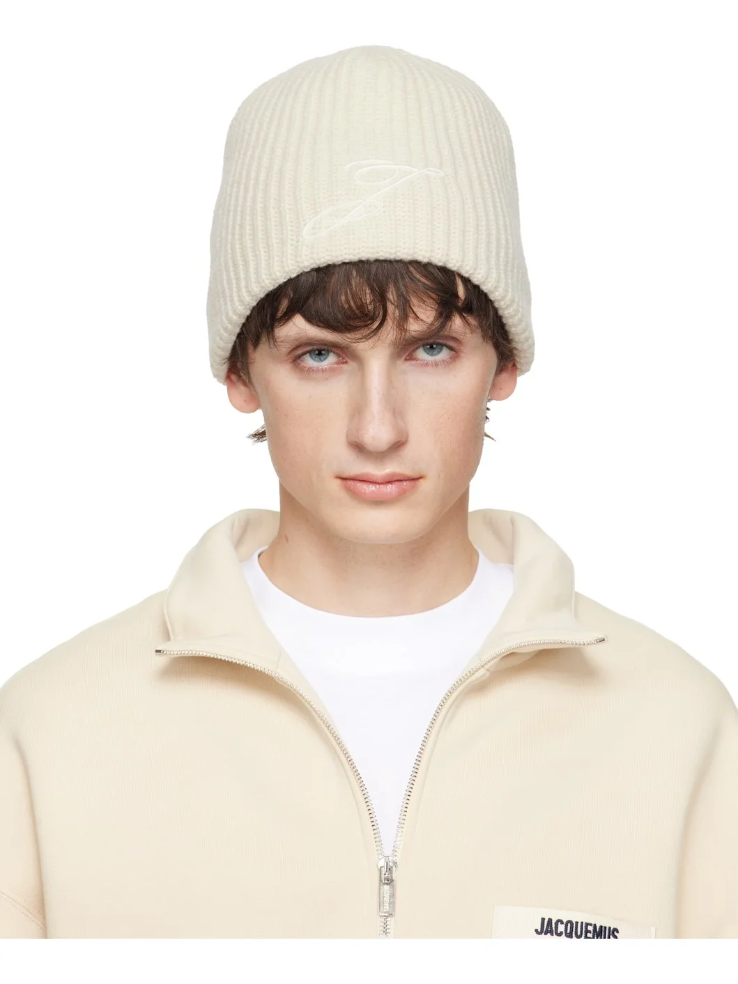 Rib-knit virgin wool beanie. Logo embroidered at face. Supplier color: Off-white 100% virgin wool. Made in Italy 252553M138005