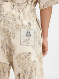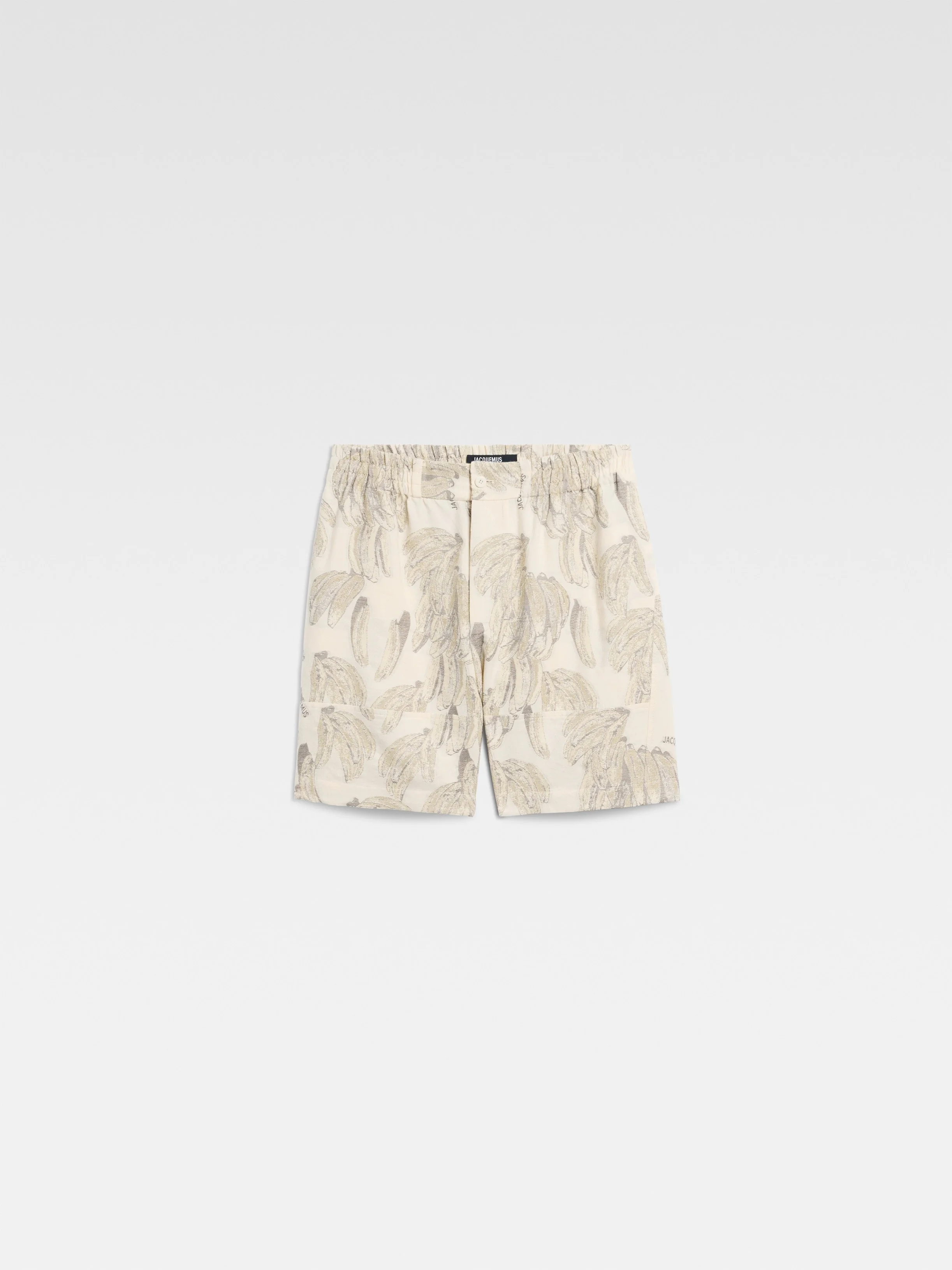 LA CROISIERE Banana jacquard shorts - Medium-high rise - Cotton jacquard with banana motif - Wide knee-length leg - Elasticated waistband - Zip fly - One visible button - Horizontal leg yoke - Four pockets - Jacquemus Club logo label on back The model is 192cm and wears a size 48 55% Polyamide - 45% Cotton / Lining: 100% Cotton Made in Bulgaria Ref. 255PA138-1748-1IE
