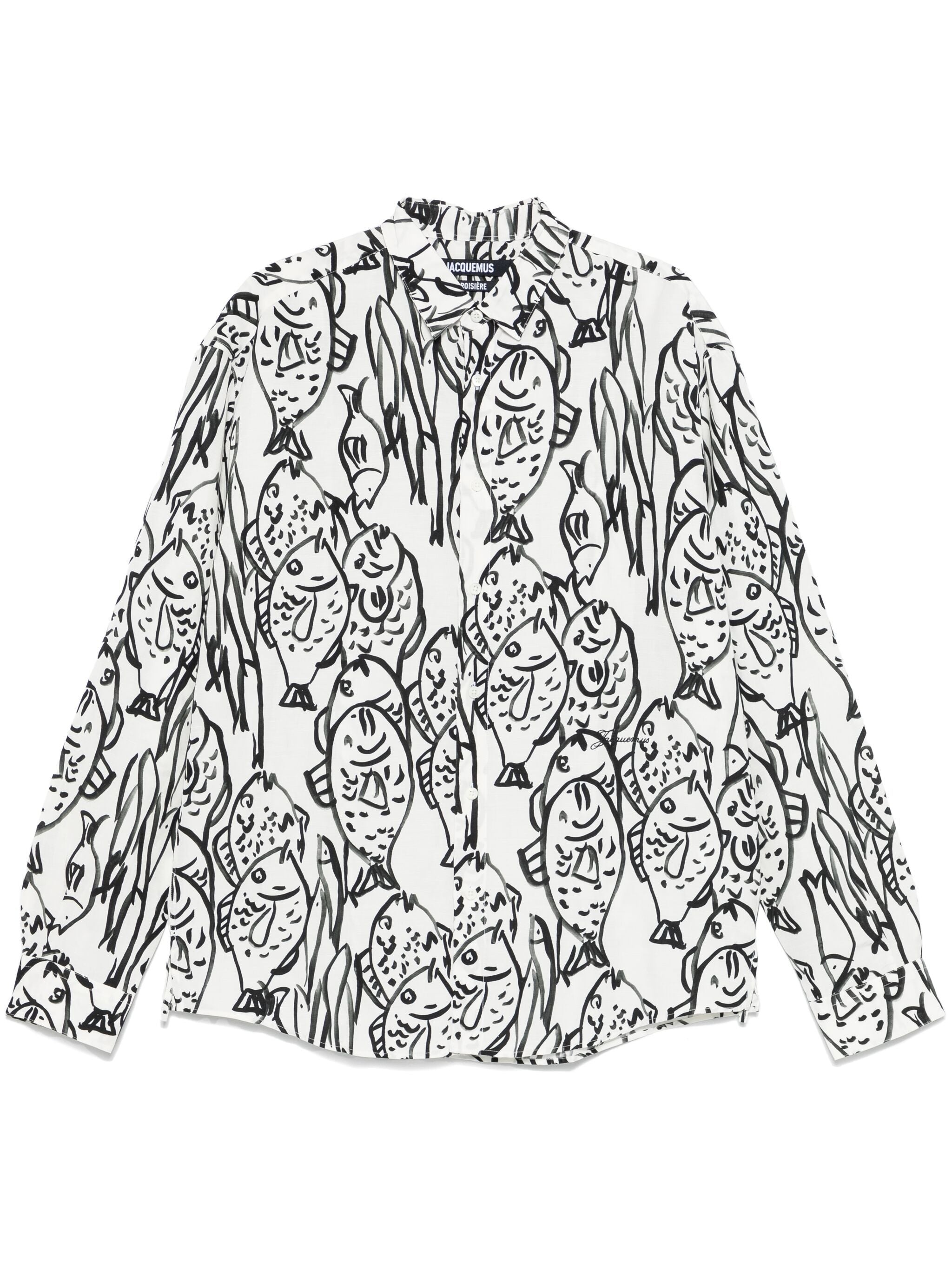 white front button fastening buttoned cuffs embroidered logo to the front all-over graphic print - Color: WHITE/BLACK - Made in: Portugal - Designer Style ID: 255SH001 1752 1IG Composition and care Linen/flax: 25.0%, Rayon: 25.0%, Viscose: 50.0%
