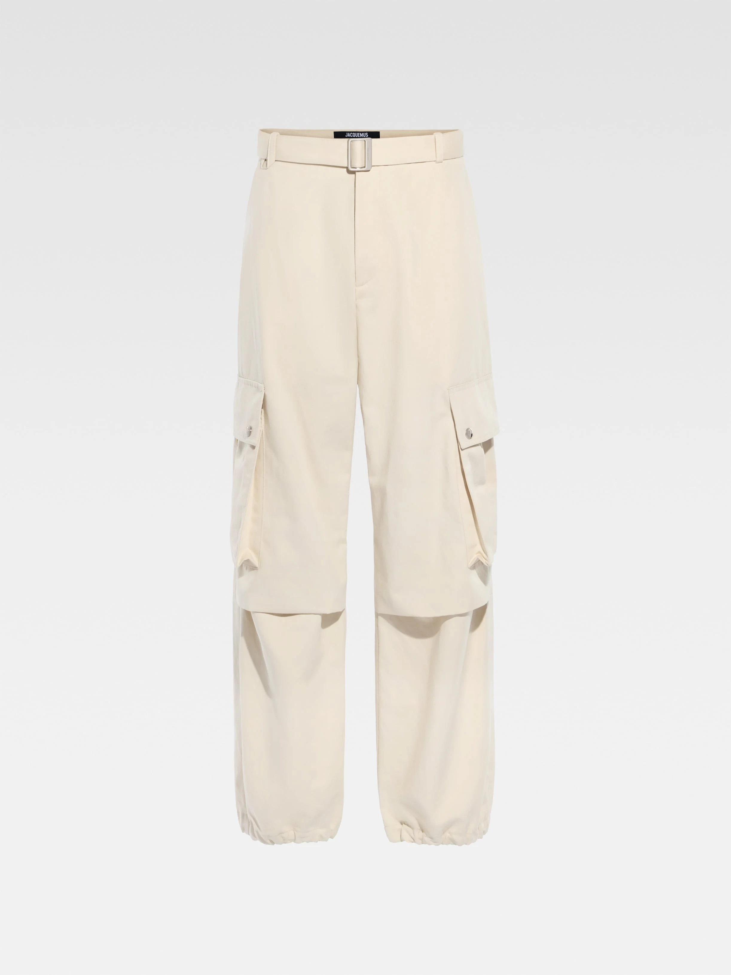 LA CASA Belted cargo pants - Relaxed, mid-rise cut - Textured cotton-linen - Removable belt with metal buckle - Belt loops with "J" loop - Slant pockets - Zipped fly - Gusseted flap pockets with snap buttons - Flap pocket with a snap button on the back - Elastic hem The model is 187cm and wears a size 48 82% Cotton - 18% Linen Made in Bulgaria Ref. 246PA097-1534-150