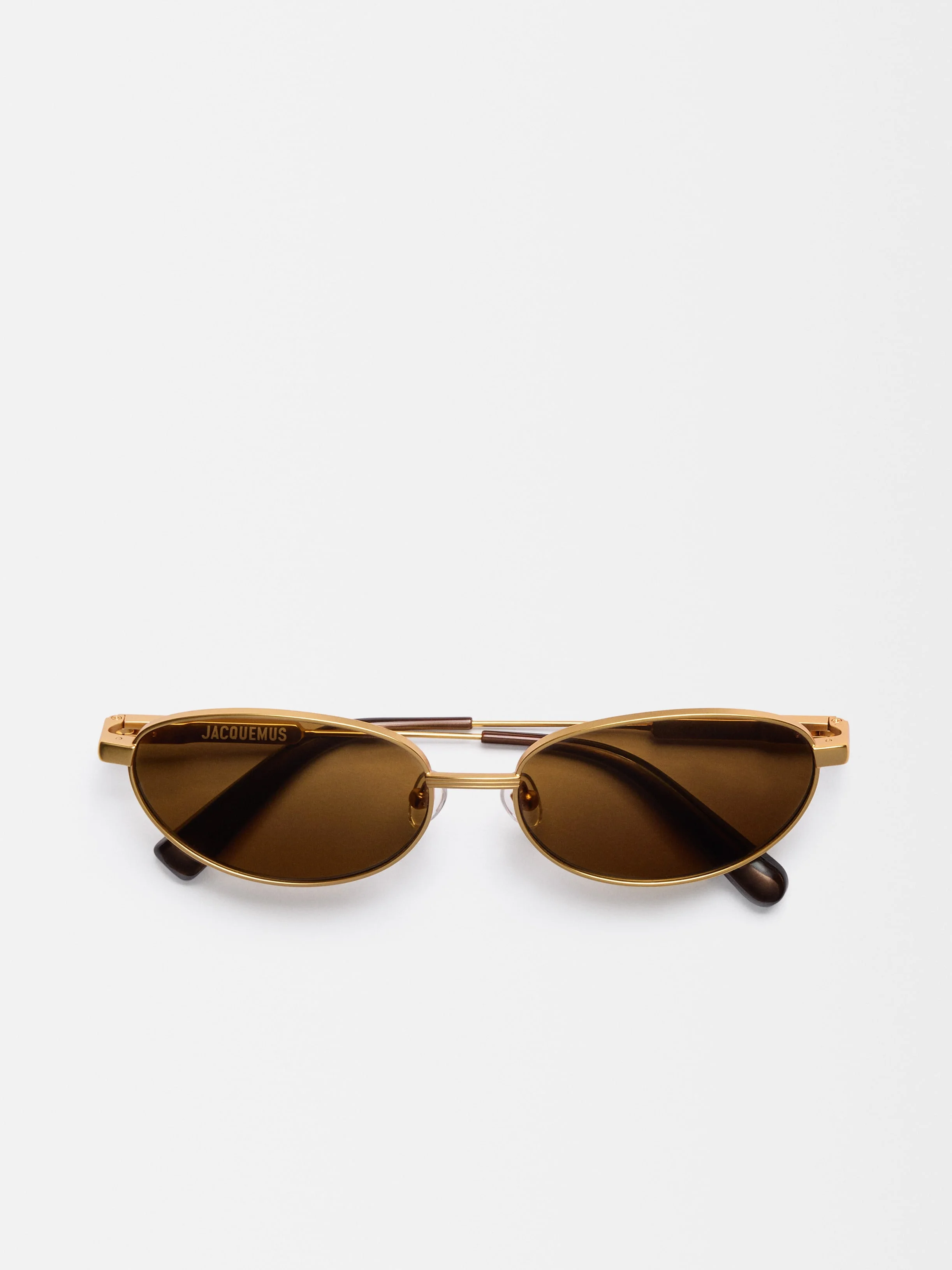 Oval aviator sunglasses - Metal sunglasses - Round frame - Tinted lenses - UV 400 protection - Nose pads - Engraved logo on the outer temple - Engraved logo on the inside temple 100% Stainless steel Made in Japan Ref. EYU00044AOT4051292