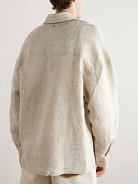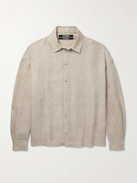 Jacquemus highlights texture in its 'La Croisiere' collection, bringing depth and dimension to classic silhouettes. Woven in an impressive croc-effect, this overshirt is made from a lightweight linen-blend and has dropped shoulder seams for a roomy, boxy fit. Size & Fit - Fits true to size. Take your normal size - Designed for a boxy fit - Dropped shoulder seam - Lightweight, non-stretchy fabric - Model is shown wearing an IT 48 - Model measures: chest 38"/ 96cm, height 6'2"/ 188cm Details & Care - Tonal-beige linen-blend - Button fastenings - 55% linen, 27% viscose, 18% cotton - Dry clean