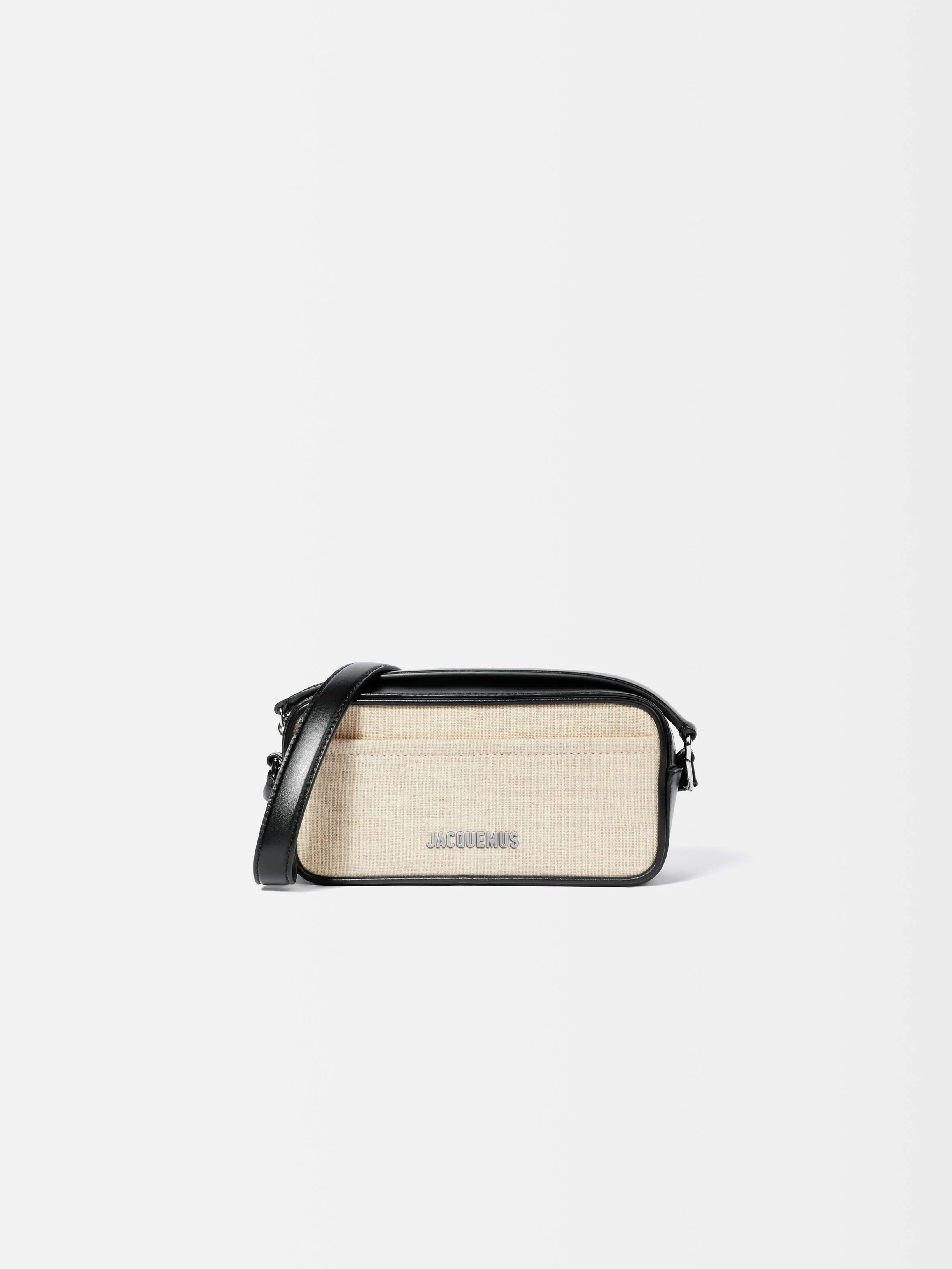 Linen camera bag - Rectangular bag in linen and smooth leather - Zipper closure - Zip-puller handle in leather for hand-carrying - Adjustable cross-body shoulder strap in leather - Patch pockets on the front and back - Interior card pocket - Silver metal logo and hardware - Height: 20cm - Length: 10cm - Width: 7cm Each fabric is unique and has been carefully selected by our team. Irregularities and variations in shade are natural, which arise from the diversity of the fibers. To maintain the original condition of this item, we recommend to avoid direct and over-exposure to light and contact with cosmetics, water or heat. We advise to store this item into the dust bag in a dry place. Made in Italy Ref. BAM00429AW000941IQ