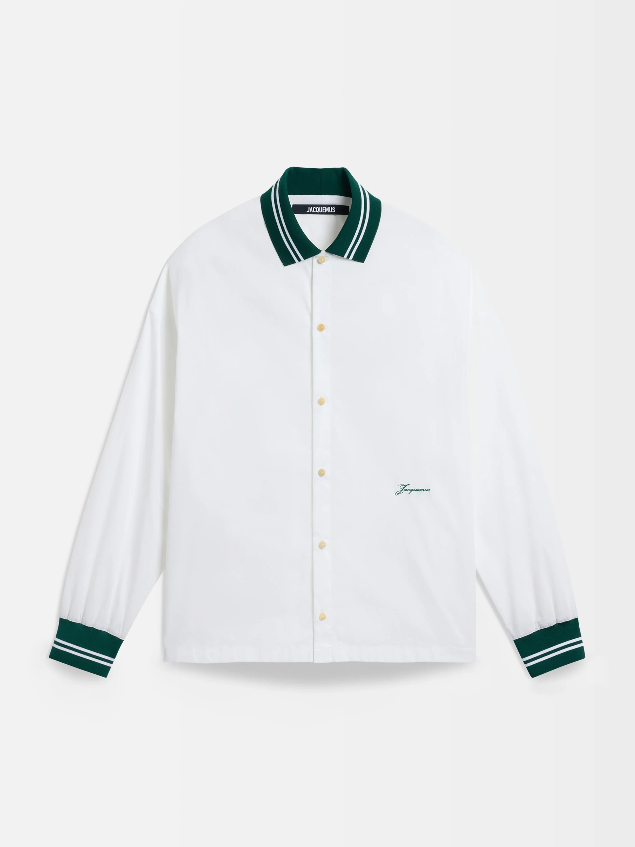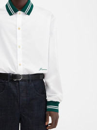 Baseball shirt - Straight fit - Cotton poplin - Contrast ribbed collar and cuffs with stripes - Button placket - 50’s embroidered logo under chest - “J” locker loop - Back yoke - Corozo buttons The model is 187cm and wears a size 50 96% Cotton - 4% Elastane Made in Bulgaria Ref. 255SH113-1454-100